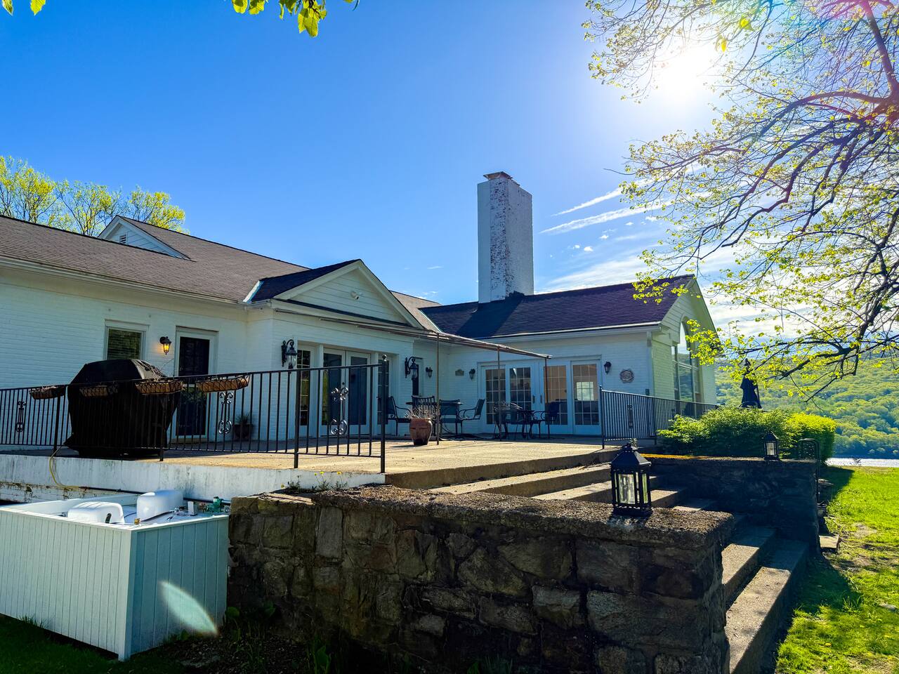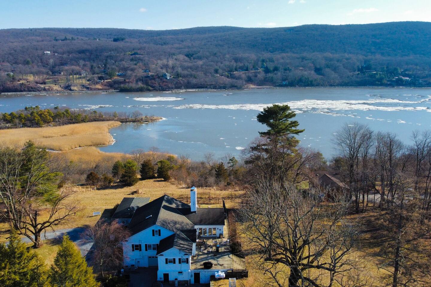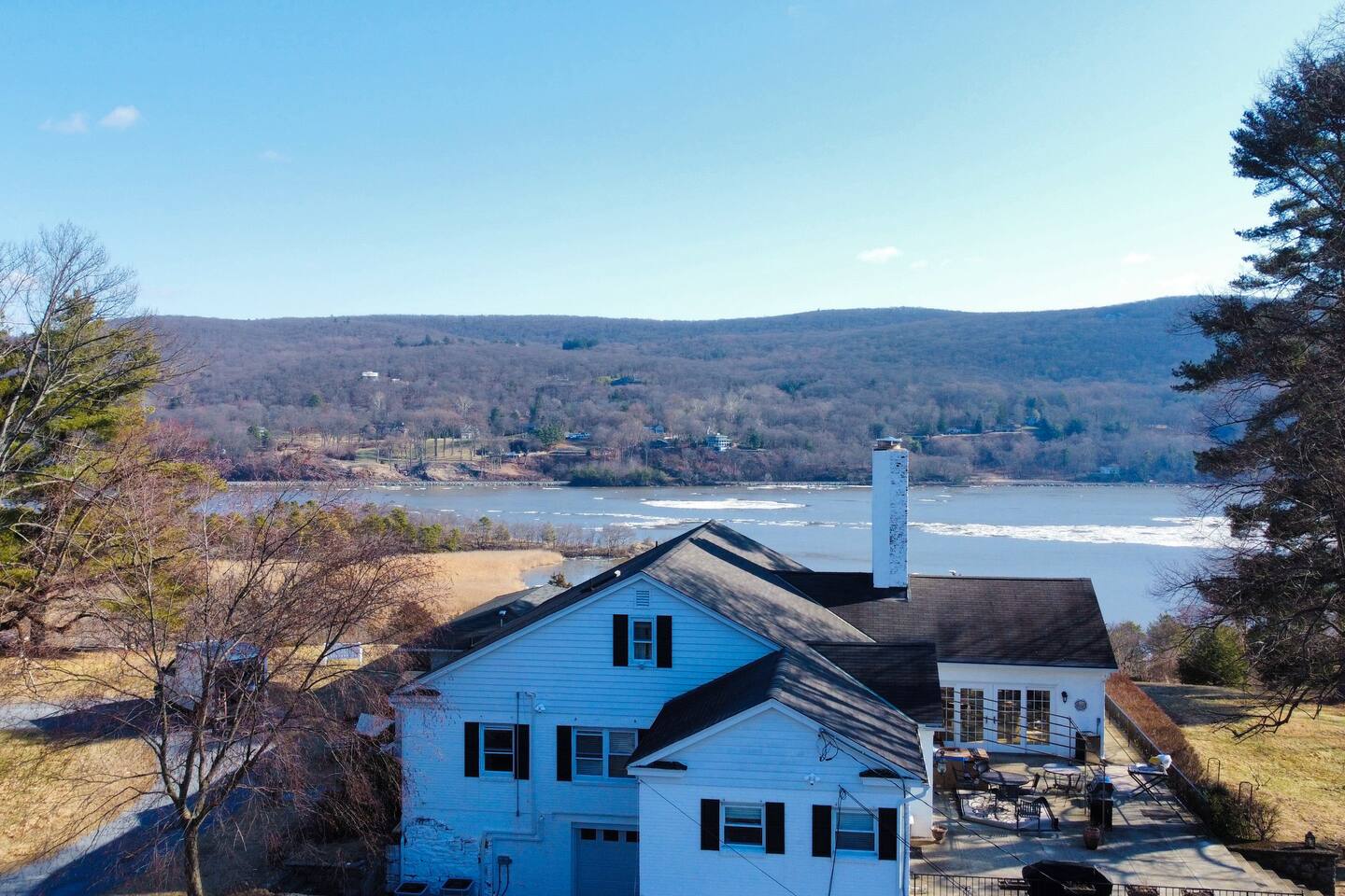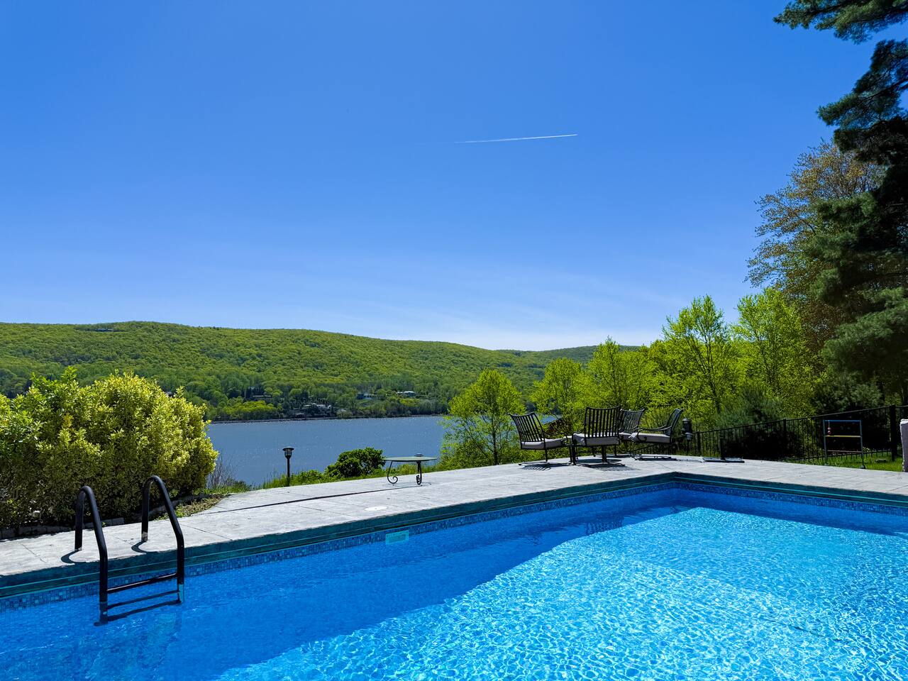 This is a beautifully renovated & famous home that has been completely upgraded with modern amenities. The home has a private saltwater pool overlooking the Hudson River, an indoor sauna, 7 bedrooms, 5 full baths, dining areas, and ample views of the Hudson River. It also has an instant fireplace (just press a button to light a cozy fire in the original fireplace) and ample TVs in many of the rooms (including a 100-inch television perfect for game day or family gatherings). The pool house provides a private second kitchen, 7th bedroom, 5th bathroom & additional sleeping space (Queen bed & a full-size pull-out couch) with more views of the Hudson River. J.P. Morgan named this property “Cragston” and he would relax here with his family and commute to NYC on his yacht just down the river. 4 of the trees on the property were actually planted by J.P. Morgan (likely his staff) and the massive exposed brick fireplace in the sunroom is original stone & brick where his staff would heat the home during winter months. Billy Joel famously also lived here in the 1970s. The primary bedroom upstairs overlooks the Hudson River and is where he wrote “New York State of Mind” and “Summer, Highland Falls” on his piano that was against the window at the time.