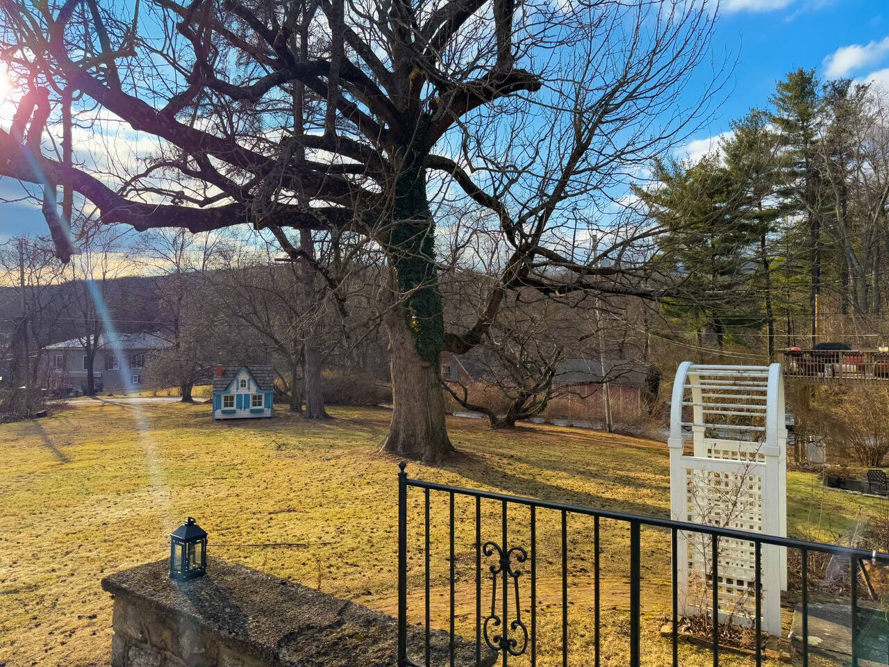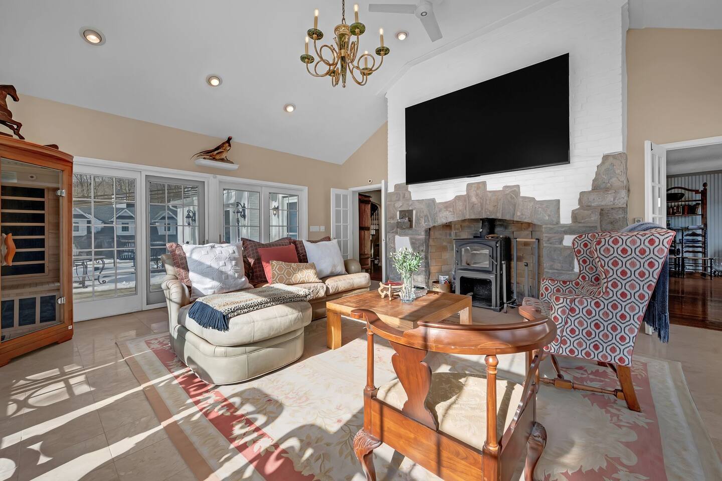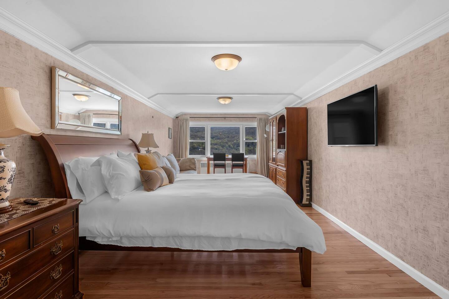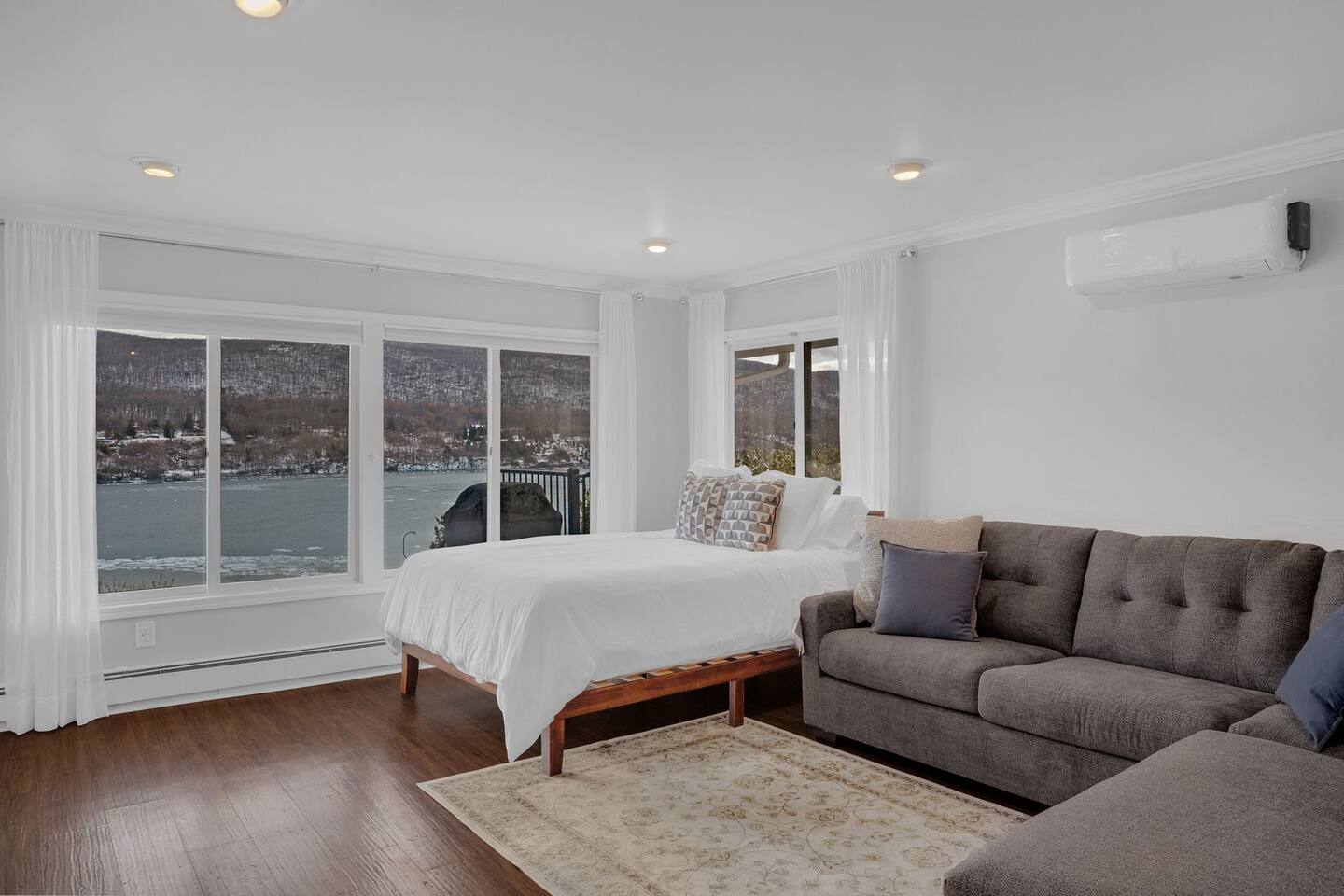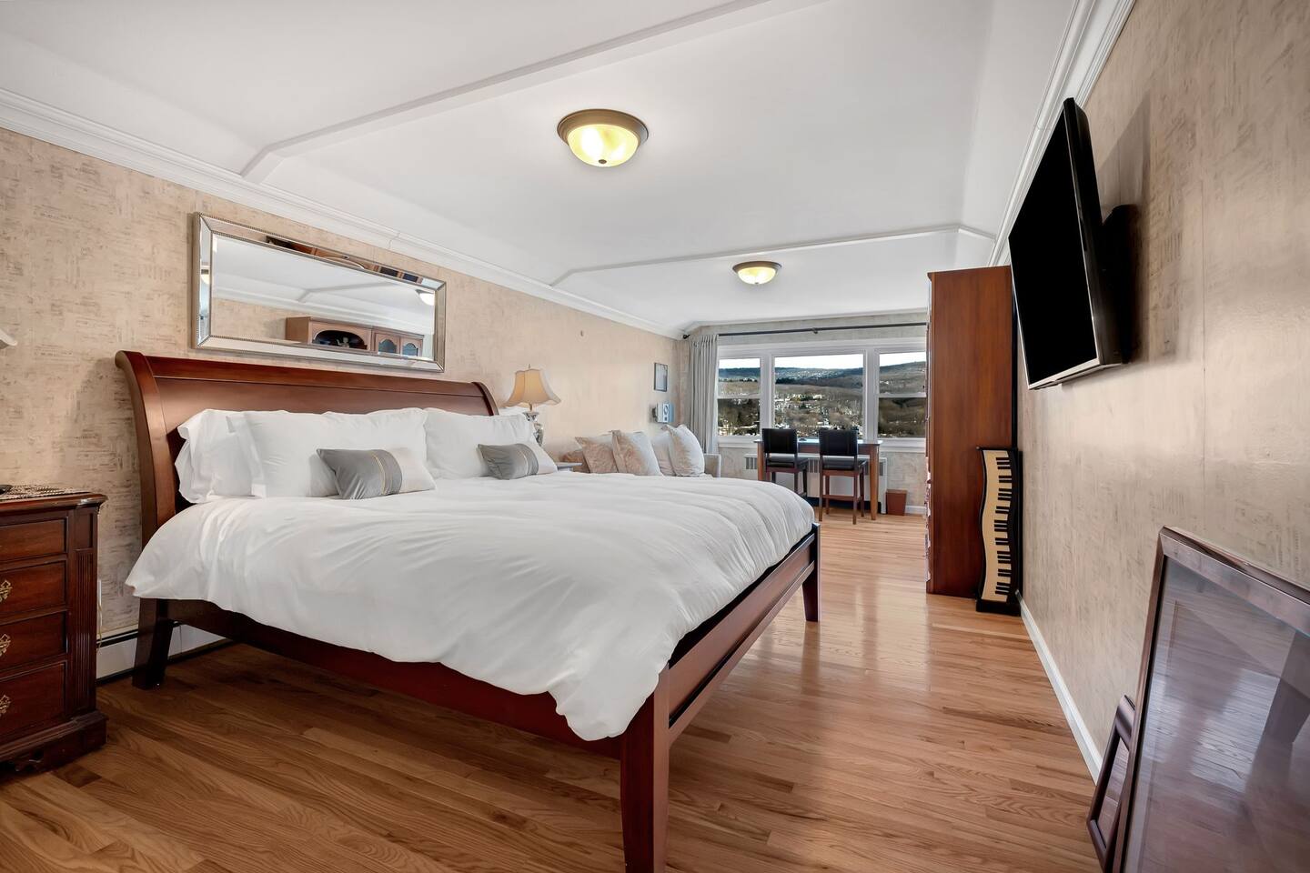 This is a beautifully renovated & famous home that has been completely upgraded with modern amenities. The home has a private saltwater pool overlooking the Hudson River, an indoor sauna, 7 bedrooms, 5 full baths, dining areas, and ample views of the Hudson River. It also has an instant fireplace (just press a button to light a cozy fire in the original fireplace) and ample TVs in many of the rooms (including a 100-inch television perfect for game day or family gatherings). The pool house provides a private second kitchen, 7th bedroom, 5th bathroom & additional sleeping space (Queen bed & a full-size pull-out couch) with more views of the Hudson River. J.P. Morgan named this property “Cragston” and he would relax here with his family and commute to NYC on his yacht just down the river. 4 of the trees on the property were actually planted by J.P. Morgan (likely his staff) and the massive exposed brick fireplace in the sunroom is original stone & brick where his staff would heat the home during winter months. Billy Joel famously also lived here in the 1970s. The primary bedroom upstairs overlooks the Hudson River and is where he wrote “New York State of Mind” and “Summer, Highland Falls” on his piano that was against the window at the time.