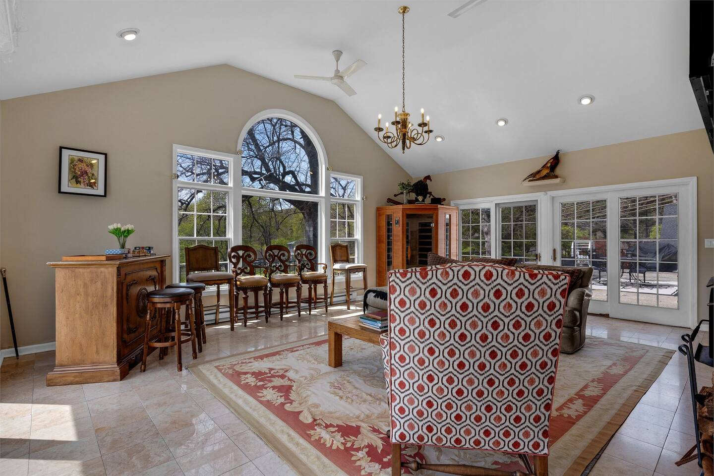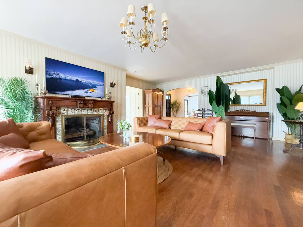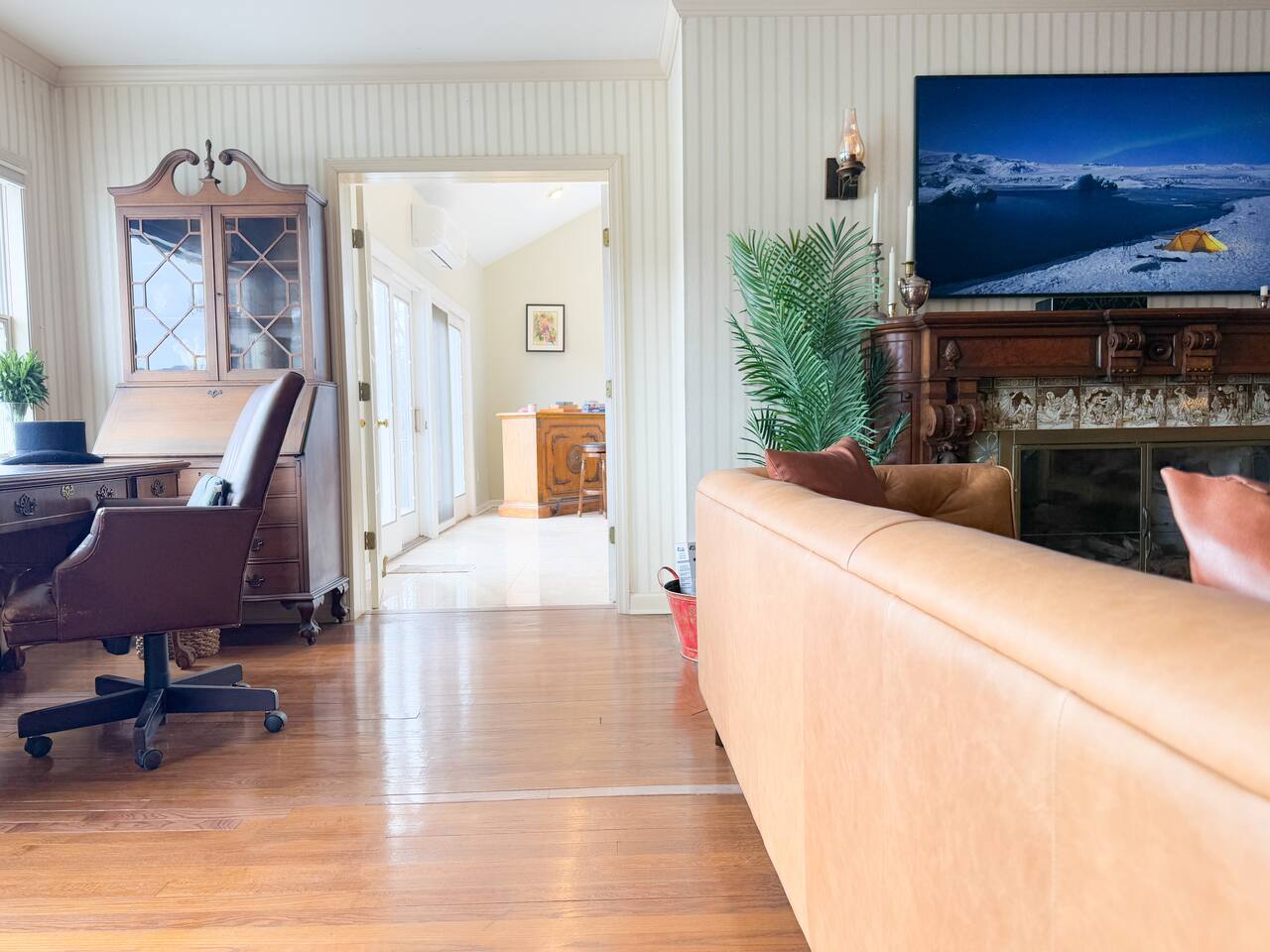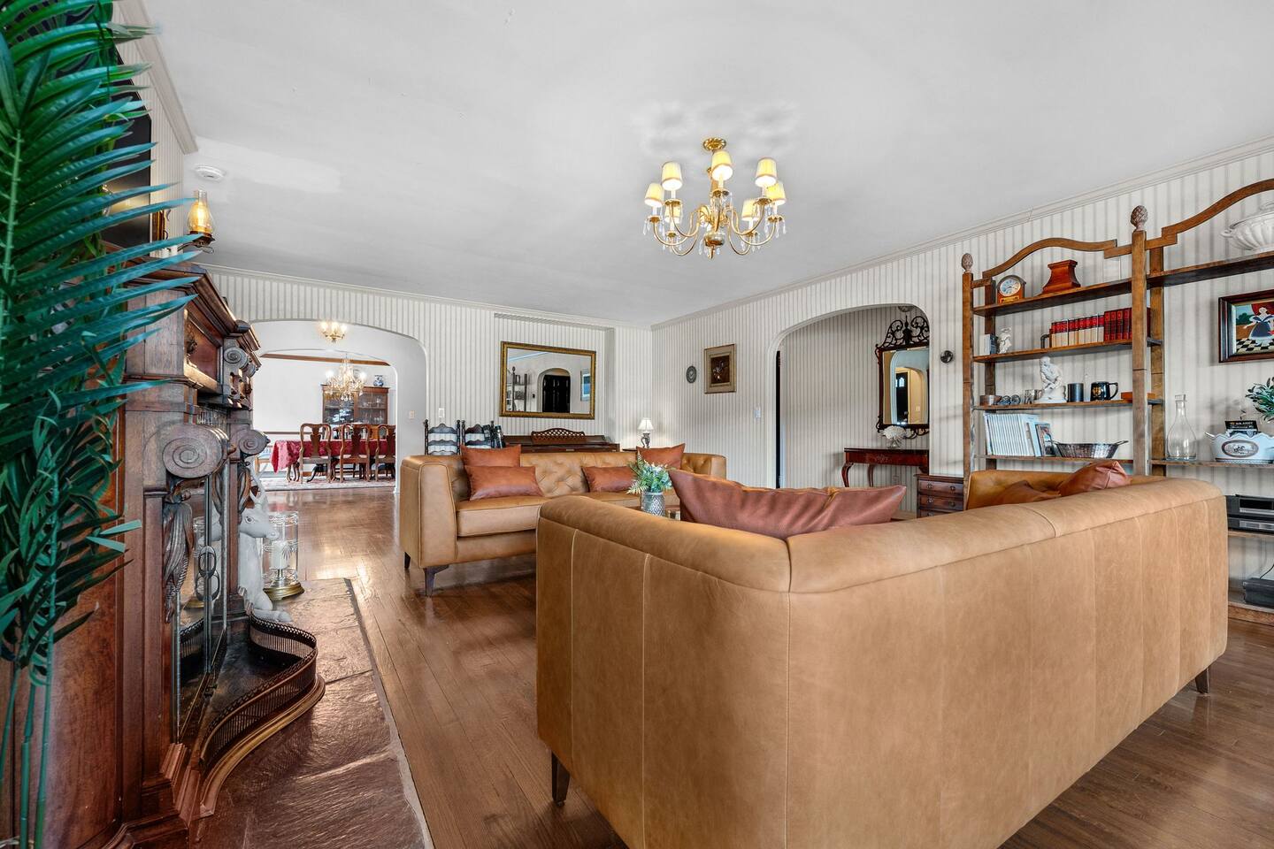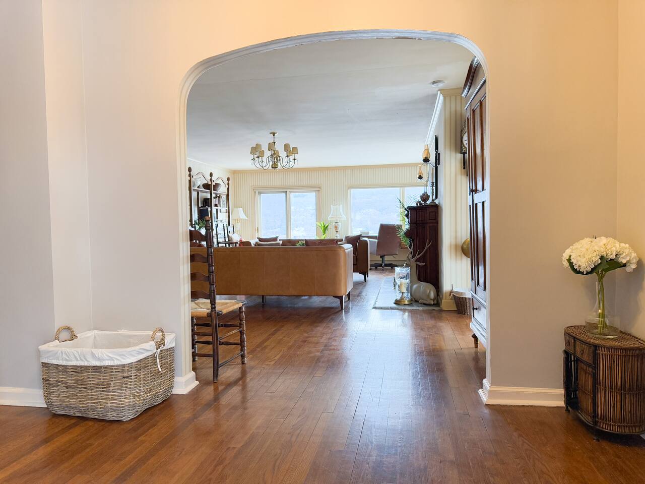 This is a beautifully renovated & famous home that has been completely upgraded with modern amenities. The home has a private saltwater pool overlooking the Hudson River, an indoor sauna, 7 bedrooms, 5 full baths, dining areas, and ample views of the Hudson River. It also has an instant fireplace (just press a button to light a cozy fire in the original fireplace) and ample TVs in many of the rooms (including a 100-inch television perfect for game day or family gatherings). The pool house provides a private second kitchen, 7th bedroom, 5th bathroom & additional sleeping space (Queen bed & a full-size pull-out couch) with more views of the Hudson River. J.P. Morgan named this property “Cragston” and he would relax here with his family and commute to NYC on his yacht just down the river. 4 of the trees on the property were actually planted by J.P. Morgan (likely his staff) and the massive exposed brick fireplace in the sunroom is original stone & brick where his staff would heat the home during winter months. Billy Joel famously also lived here in the 1970s. The primary bedroom upstairs overlooks the Hudson River and is where he wrote “New York State of Mind” and “Summer, Highland Falls” on his piano that was against the window at the time.