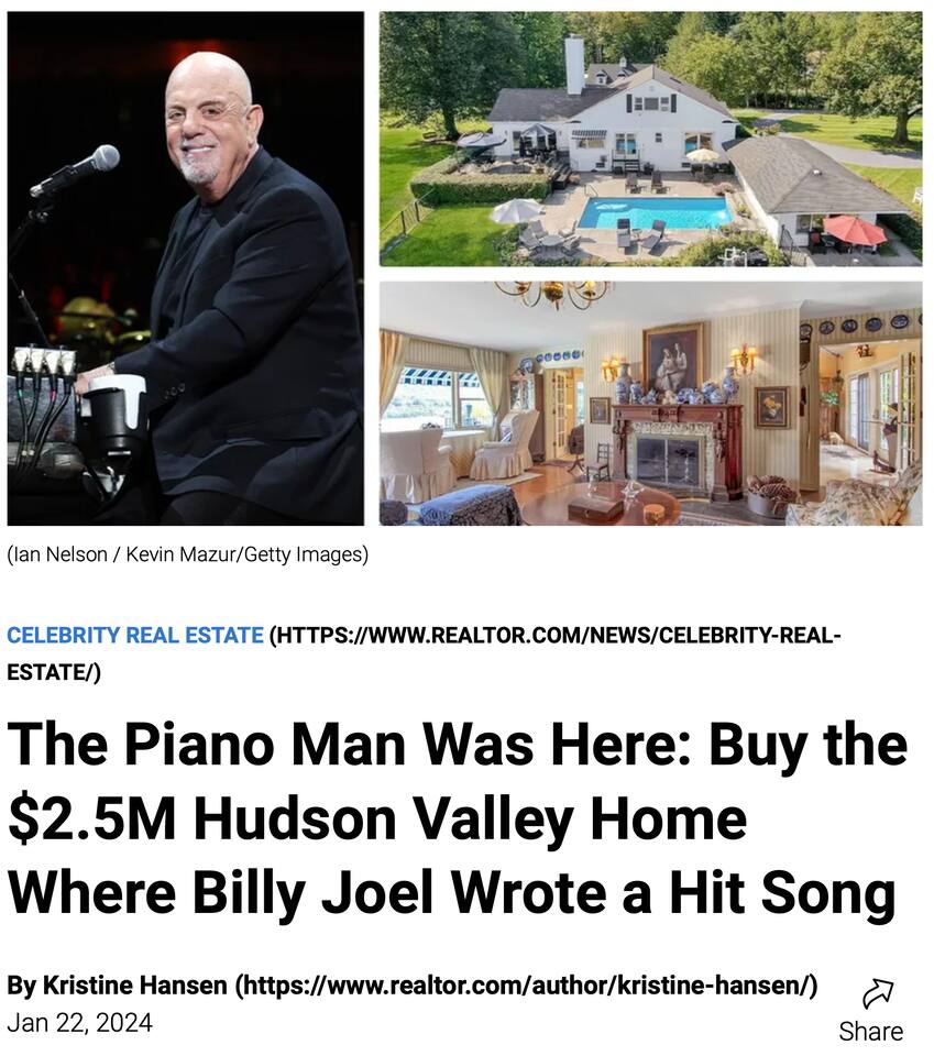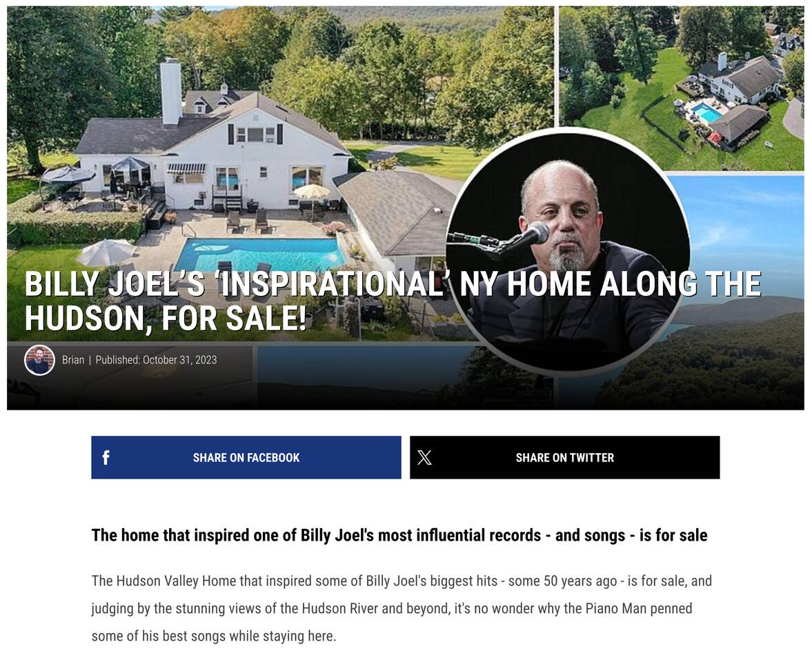 Billy Joel/JP Morgan Hudson Valley Home 1h to NYC